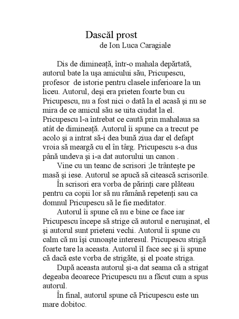 Cucoana venea s-i cear un serviciu ca dovad c e un prieten adevrat al familiei sale. Caragiale rezumat şi alt comentariu Lecţii educative pentru elevii din clasele V-VIII 22 ianuarie 2014 2010 0 stele 0 review-uri Textul SONOR al schiţei BACALAUREAT de IL. Cucoana venea să-i ceară un serviciu ca dovadă că e un prieten adevărat al familiei sale.