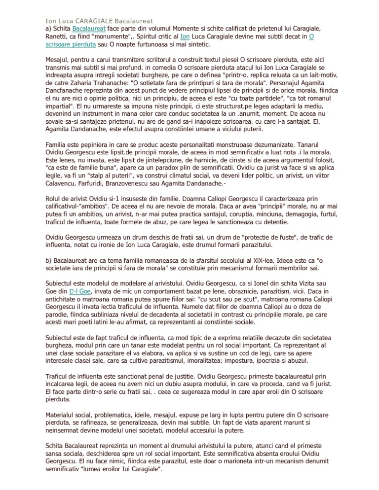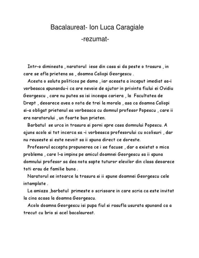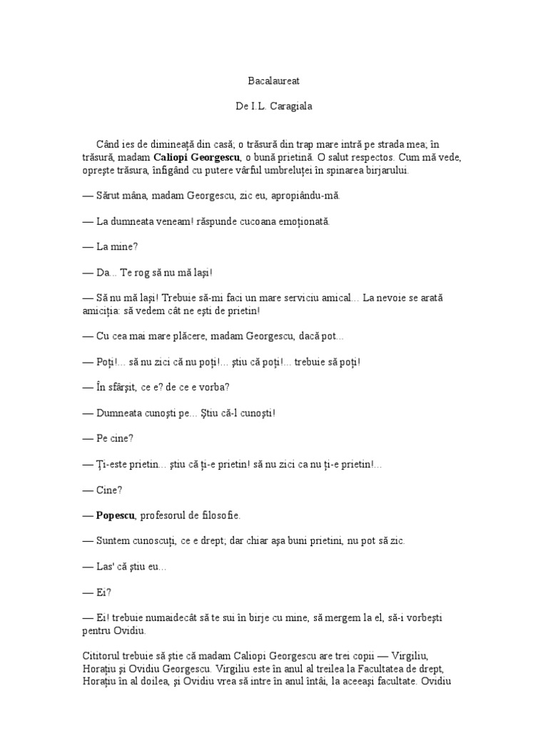Bacalaureat De I L Caragiale Rezumat Pdf