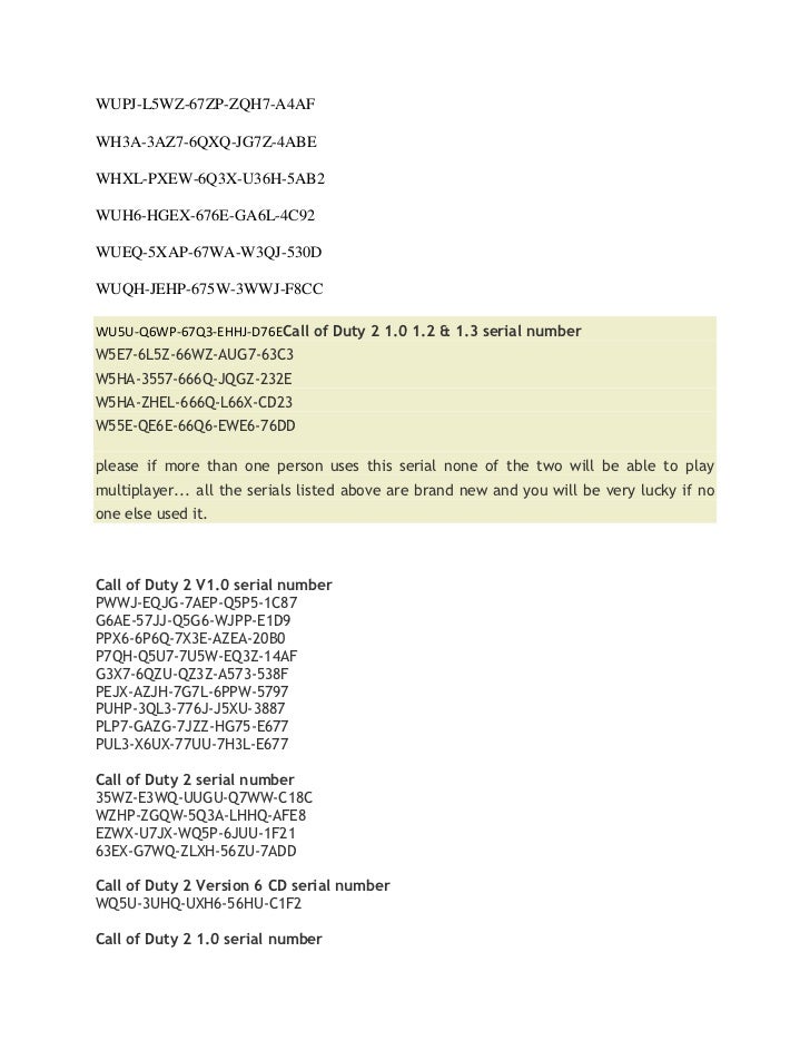 PLEASE SUBSCRIBE MY CHANNELIf you want to play Multiplayer you need to install 13 Patch. For Call of Duty 2005 XEZL-GZWX-XQZG-GEGU-EEFC W5HA-3557-666Q-JQGZ-232E W5HA-ZHEL-666Q-L66X-CD23 W55E-QE6E-66Q6-EWE6-76DD For v 10 G6AE-57JJ-Q5G6-WJPP-E1D9 PPX6-6P6Q-7X3E-AZEA-20B0 P7QH-Q5U7-7U5W-EQ3Z-14AF G3X7-6QZU-QZ3Z-A573-538F. Compare Call of Duty Vanguard PC CD Key Code Prices and Buy 0 As you save money and time to download and play Call of Duty Vanguard PC game you can buy and compare game key from reliable stores.